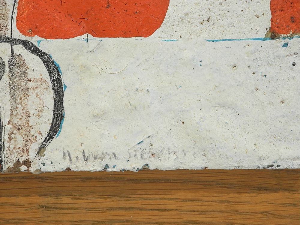 Mixed Media Graffito Panel signed H. (Herbert) Siebner, 7 1/4 x 8 1/8" , "Ancient Lovers" 1977.