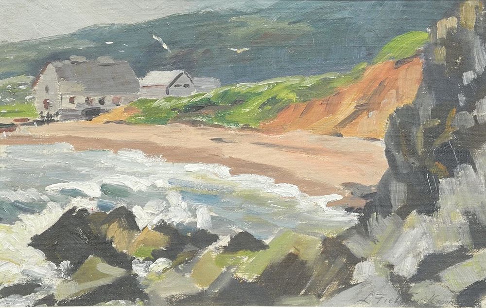 Oil on Board signed L. (Lionel) Fielding-Downes, 9 5/8 x 15", "Maisons de Pecheurs".