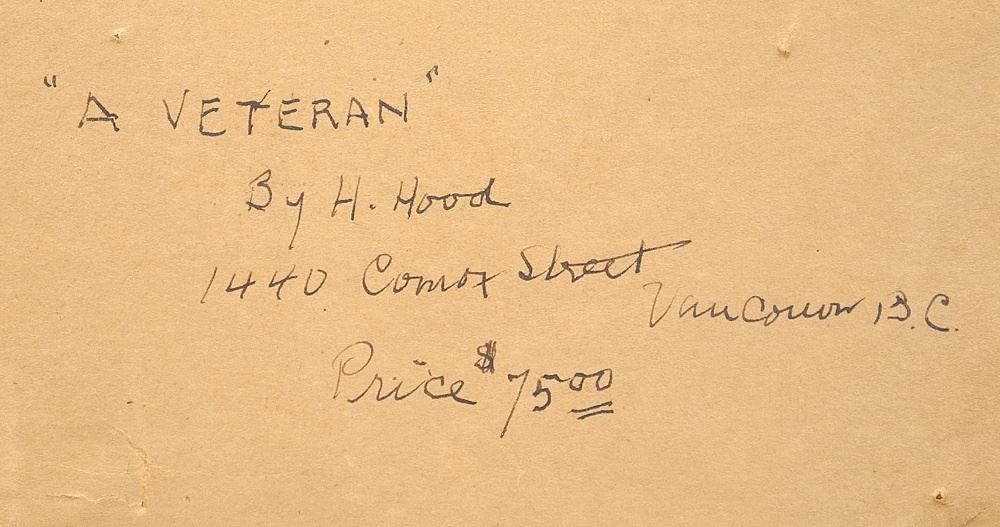 LOT 80 Oil on Canvas Board signed H.(Harry) Hood, 14 1/2 x 17 1/2", "A Veteran". Estimate: $150 - $200 Auction Date: Tuesday, August 26 2025 at 4:00 PM