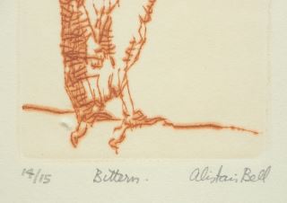 LOT 124 Colour Etching signed Alistair Bell, 7 1/2 x 5 7/8", "Bittern" #14/15. Estimate: $100 - $200 Sold For: $110 Auction Date: Tuesday, August 26 2025 at 4:00 PM