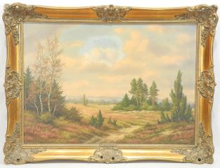 LOT 30 Oil on Canvas signed FJ Feuer, 20 x 27 3/4", "Autumn Countryside". Estimate: $100 - $200 Auction Date: Tuesday, August 26 2025 at 4:00 PM