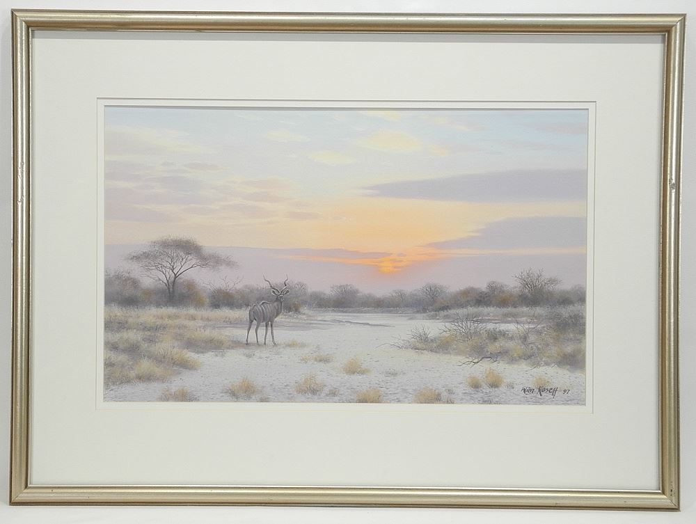 LOT 4 Pair of Watercolour signed Wim Kosch 97', 12 1/2 x 20 1/2", "African Animals". Estimate: $100 - $200 Sold For: $160 Auction Date: Tuesday, August 26 2025 at 4:00 PM