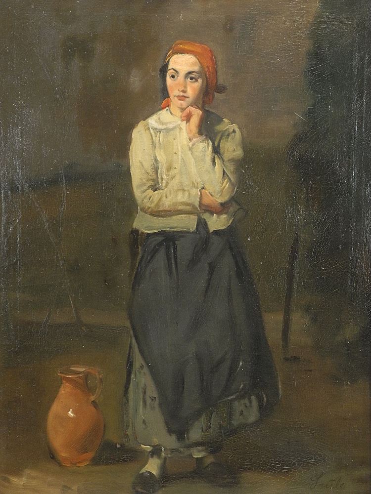 LOT 69 Oil on Canvas signed J/Tuile, 31 x 23", "Portrait of a Woman in a Red Scarf". Estimate: $180 - $300 Sold For: $325 Auction Date: Tuesday, August 26 2025 at 4:00 PM
