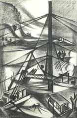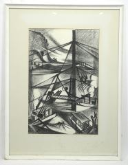LOT 95 Pair of Graphite Drawings on Paper signed LeRoy (Jensen)'62, 26 x 17 1/ 8", "Stylized Landscapes". Estimate: $250 - $400 Sold For: $350 Auction Date: Tuesday, August 26 2025 at 4:00 PM