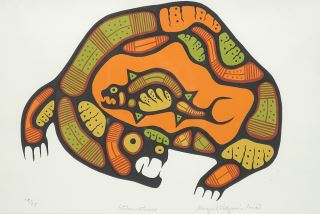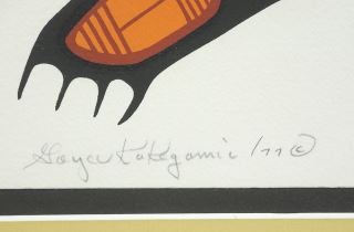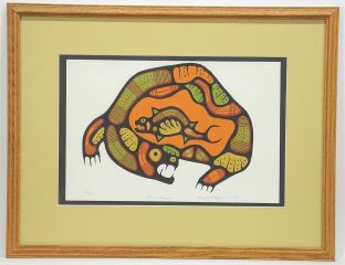 Serigraph signed Goyce Kakegamic'77, 11 1/4 x 17 1/4", "Hibernation" #13/ 55.