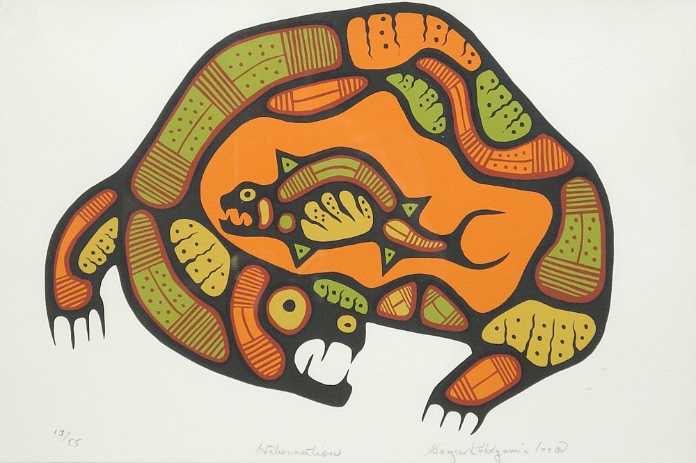 LOT 42 Serigraph signed Goyce Kakegamic'77, 11 1/4 x 17 1/4", "Hibernation" #13/ 55. Estimate: $100 - $200 Auction Date: Tuesday, August 26 2025 at 4:00 PM