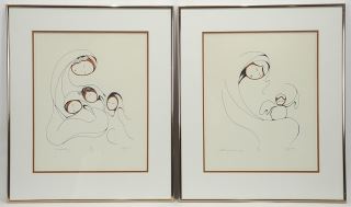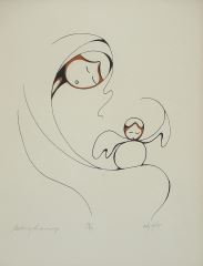 Two Serigraphs signed (Daphne) Odjig /79, 14 1/8 x 11 1/2", "Comforting" & "Getting His Wings" #98/