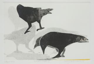Paper Cut Monotype signed Jenny Waetli-Walters, 7 x 10", "Golden Dawn II" #1/1.