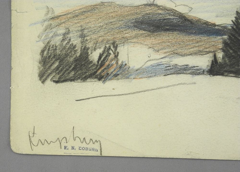 LOT 31 Coloured Drawing with Estate Stamp of F.S.(Frederick Simpson) Coburn, 5 1/2 x 9 1/4", "Landscape Estimate: $100 - $200 Auction Date: Tuesday, August 26 2025 at 4:00 PM