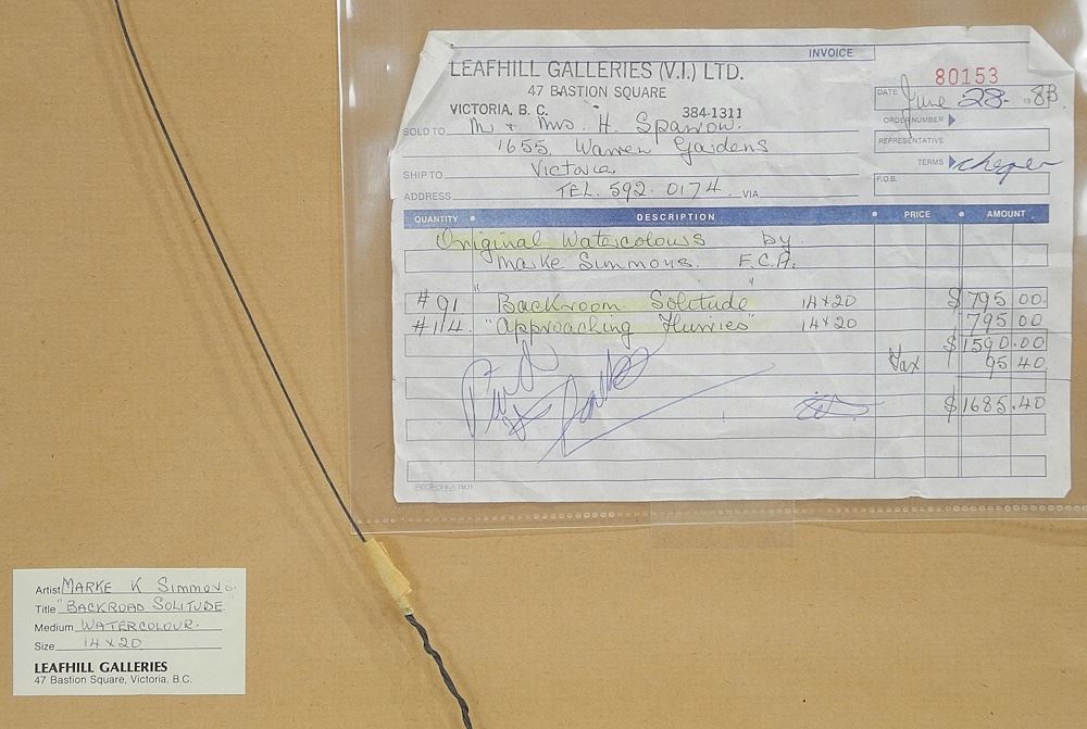 Two Watercolour signed Marke K. Simmons, 14 x 20", "Backroom Solitude" & "Approaching..