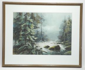 LOT 24 Watercolour signed (Harry) Heine, 19 7/8 x 20 1/2", "Cowichan River". Estimate: $250 - $400 Sold For: $325 Auction Date: Tuesday, December 16 2025 at 4:00 PM