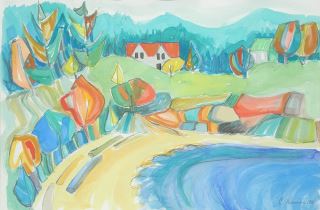 Gouache on Paper signed C. (Christine) Reimer, 14 1/4 x 21 1/2" , "Secluded Beach, Gordon