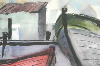 LOT 120 Watercolour Monogrammed PP (Poul Poulsen), 6 x 9", "Fisherman's Wharf". Estimate: $60 - $100 Auction Date: Tuesday, December 16 2025 at 4:00 PM