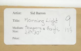 LOT 28 Tempera & Acrylic on Board signed (Sid) Barron, 24 x 30", "Morning Light". Estimate: $300 - $500 Sold For: $300 Auction Date: Tuesday, December 16 2025 at 4:00 PM