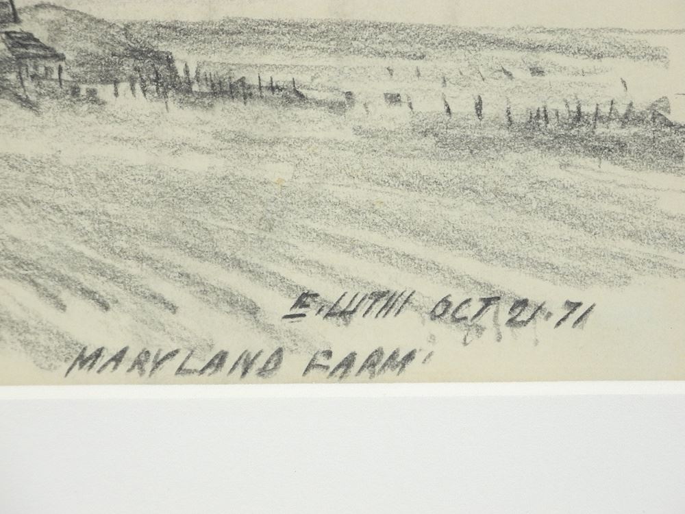 Drawing signed E. (Ernest) Luthi, 8 1/2 x 11 1/2", "Sandhill Cranes, Maryland Farm Oct/71.