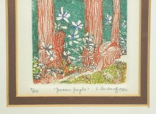 LOT 60 Coloured Etching signed C. (Carole) Bondaroff, 6 1/4 x 3 1/2", "Juneau Jungle" #9/20. Estimate: $60 - $100 Sold For: $60 Auction Date: Tuesday, December 16 2025 at 4:00 PM