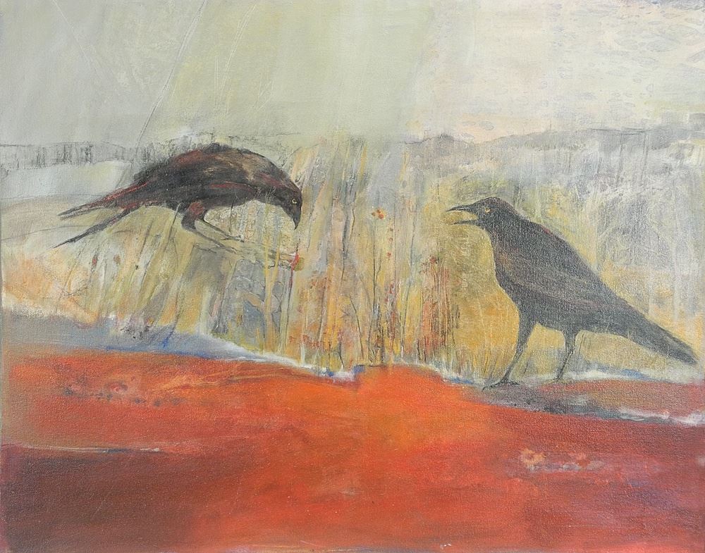 LOT 134 Oil on Canvas signed Anne Hakala Verso, 24 x 30", "Two Crows I See... ". Estimate: $100 - $200 Sold For: $300 Auction Date: Tuesday, December 16 2025 at 4:00 PM
