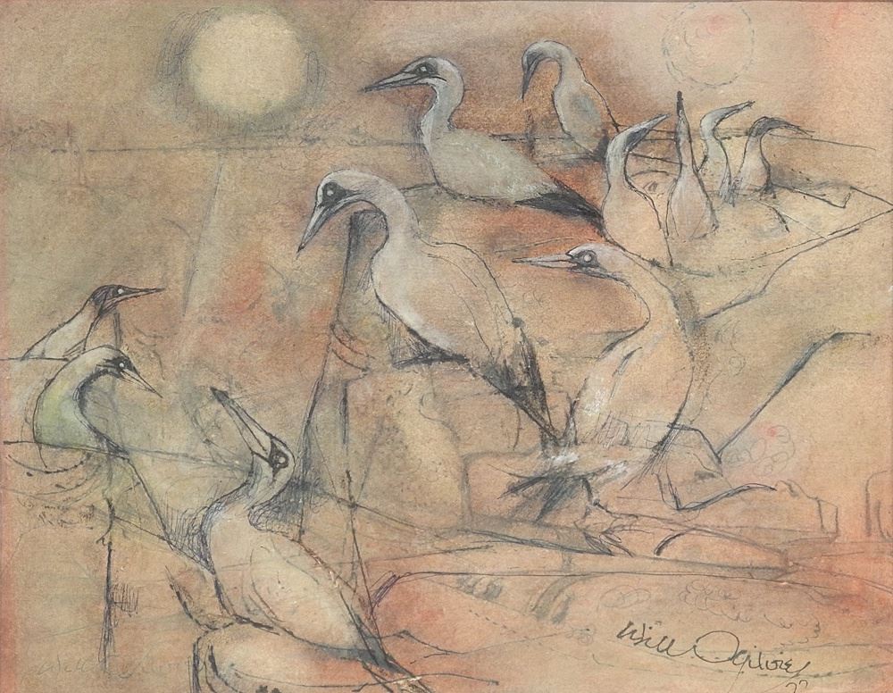 LOT 145 Watercolour signed Will Ogilvie'77 11 3/4 x 15", "Gathering of Gannets/ Gaspe 77 (matted). Estimate: $150 - $200 Sold For: $110 Auction Date: Tuesday, December 16 2025 at 4:00 PM