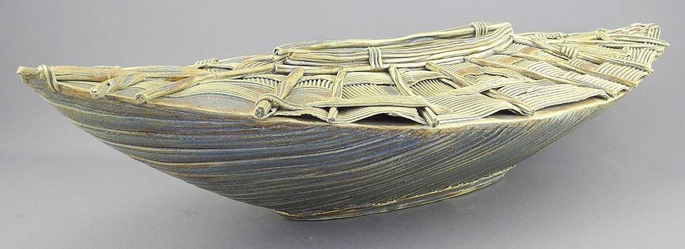 LOT 72 Ceramic Sculpture by Laurie Rolland, RCA, 20 1/4"L, "Wrapped Boat". Estimate: $100 - $200 Sold For: $160 Auction Date: Tuesday, December 16 2025 at 4:00 PM