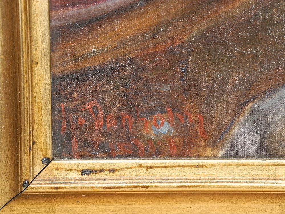 LOT 147 Oil on Board signed H. Denholm, 18 1/2 x 19 1/2", "Young Girl Crocheting". Estimate: $150 - $300 Auction Date: Tuesday, December 16 2025 at 4:00 PM