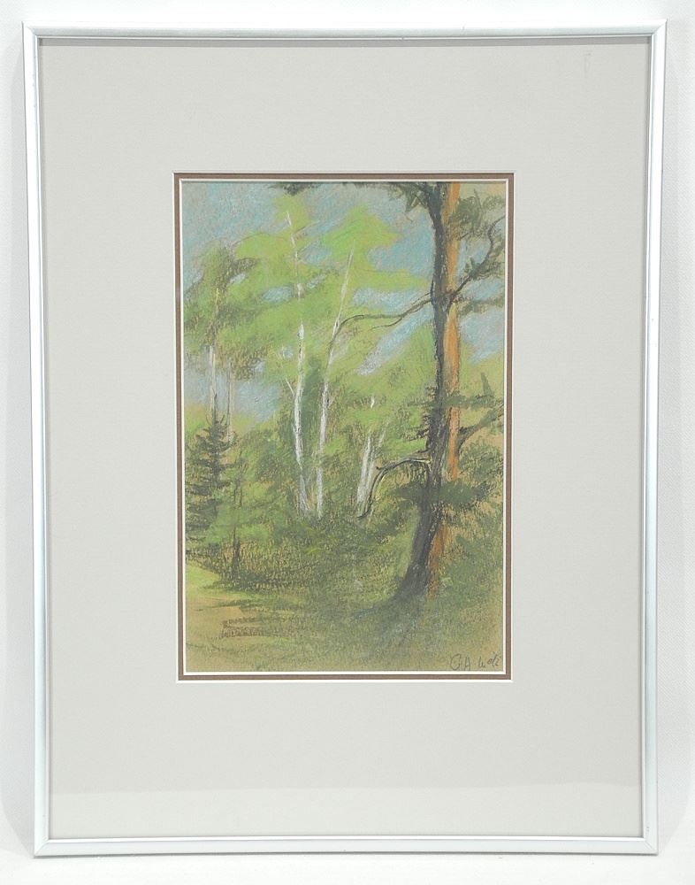 LOT 128 Pastel on Paper Monogrammed G.A.McK (Georgina A. McKay), 8 3/8 x 5 1/2", "Trees Prince Albert, Sask Estimate: $80 - $100 Auction Date: Tuesday, December 16 2025 at 4:00 PM