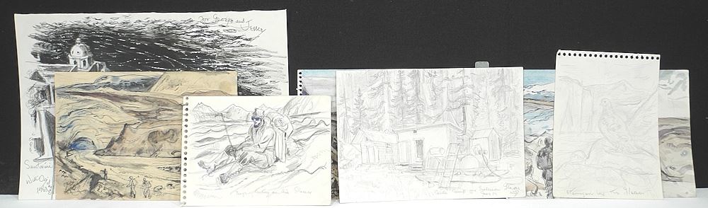 LOT 119 Collection of Seven Drawings & Watercolours by Will Ogilvie: 6 Glaciers/1 Santorini. Estimate: $300 - $500 Auction Date: Tuesday, December 16 2025 at 4:00 PM