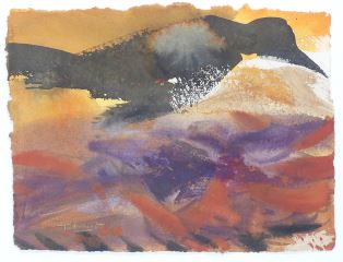 LOT 34 Gouache on Handmade Paper signed (Richard) Tetrault, 11 5/8 x 15", "Crow in a Landscape". Estimate: $80 - $120 Sold For: $80 Auction Date: Tuesday, March 10 2026 at 4:00 PM