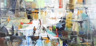 LOT 11 Acrylic on Board signed Adrian Dingle, 17 1/2 x 35 1/2", "Reunion in Rockport" #1640. Estimate: $600 - $900 Sold For: $600 Auction Date: Tuesday, March 10 2026 at 4:00 PM