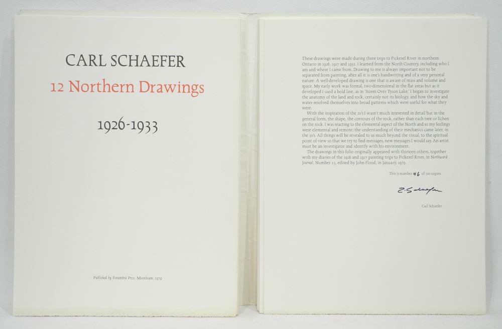 LOT 108 Folio Carl Schaefer 12 Northern Drawings 1926-1933 Penumbra Press 1979 #46/300. Estimate: $100 - $200 Sold For: $50 Auction Date: Tuesday, March 10 2026 at 4:00 PM