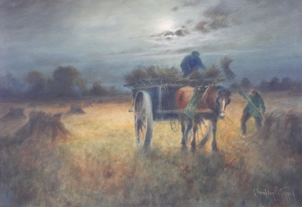 Watercolour signed G. (George) Thompson Pritchard, 18 1/2 x 26 1/2" , "Moonlit Horse & Cart".