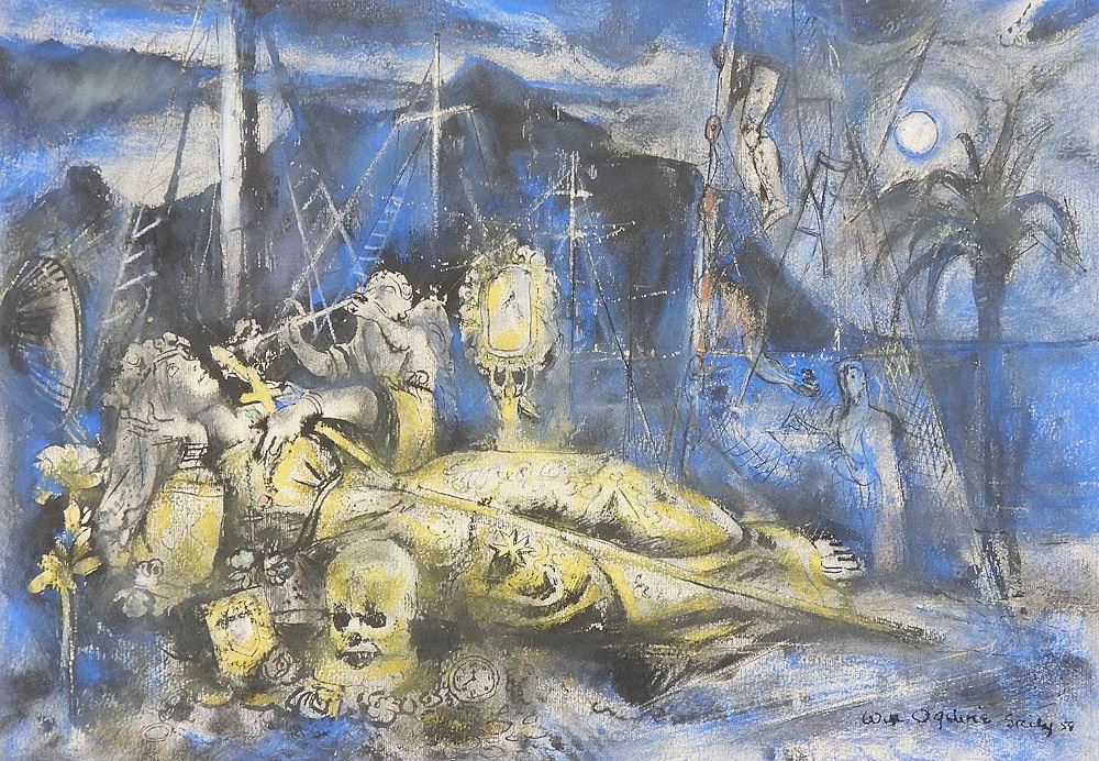 Watercolour signed Will Ogilvie, 13 1/4 x 19", "Sicily '58".