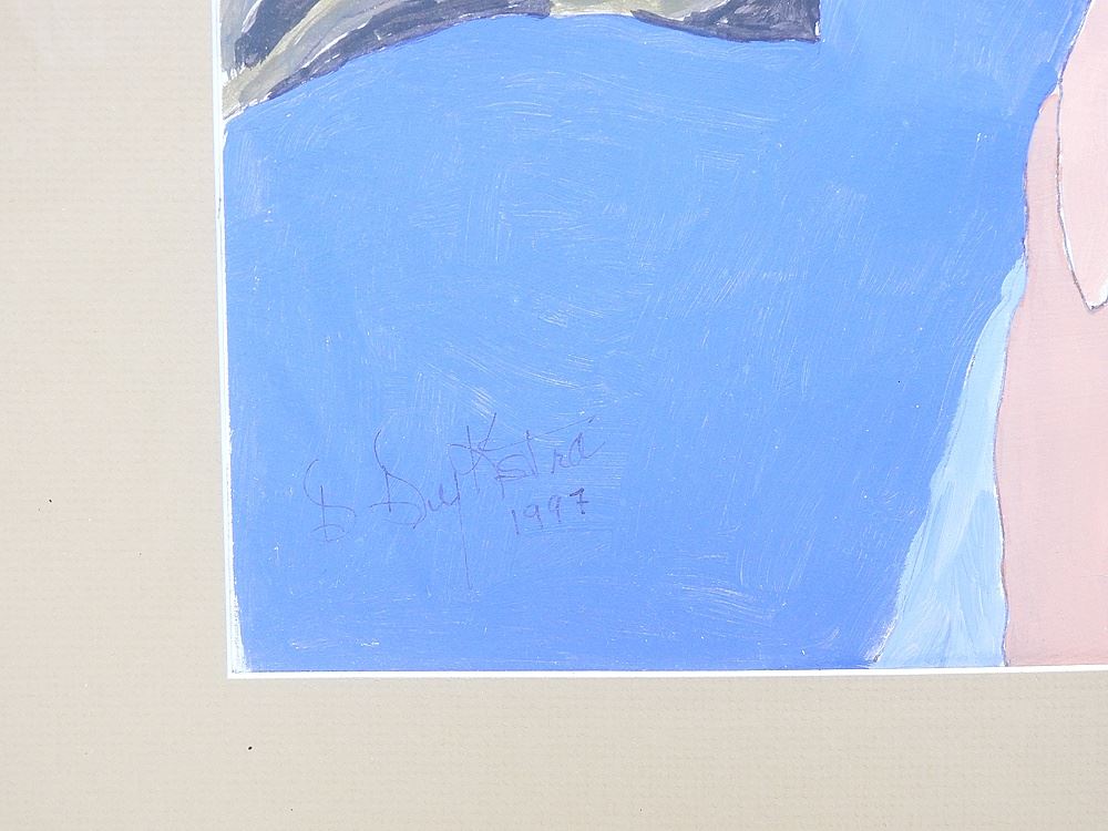 Acrylic on Paper signed D. (Dolores) Dykstra 1997, 17 x 25 1/2", "Seated Woman With Bouquet".