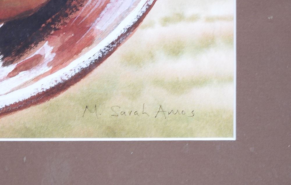 Mixed Media on paper signed M. Sarah Amos, 10 3/8 x 13 3/4", "Bowl of Apples".