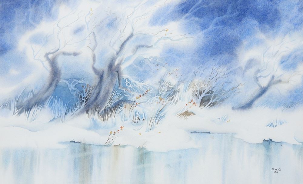 LOT 39 Watercolour signed (Mike) Svob, 12 3/8 x 20 1/2", "Pond's Edge Winter". Estimate: $100 - $300 Sold For: $50 Auction Date: Tuesday, March 10 2026 at 4:00 PM
