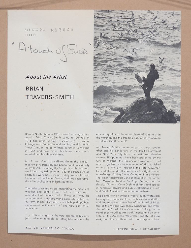 LOT 151 Watercolour signed B. (Brian) Travers-Smith, 13 x 20", "A Touch Of Snow". Estimate: $250 - $400 Sold For: $325 Auction Date: Tuesday, March 10 2026 at 4:00 PM
