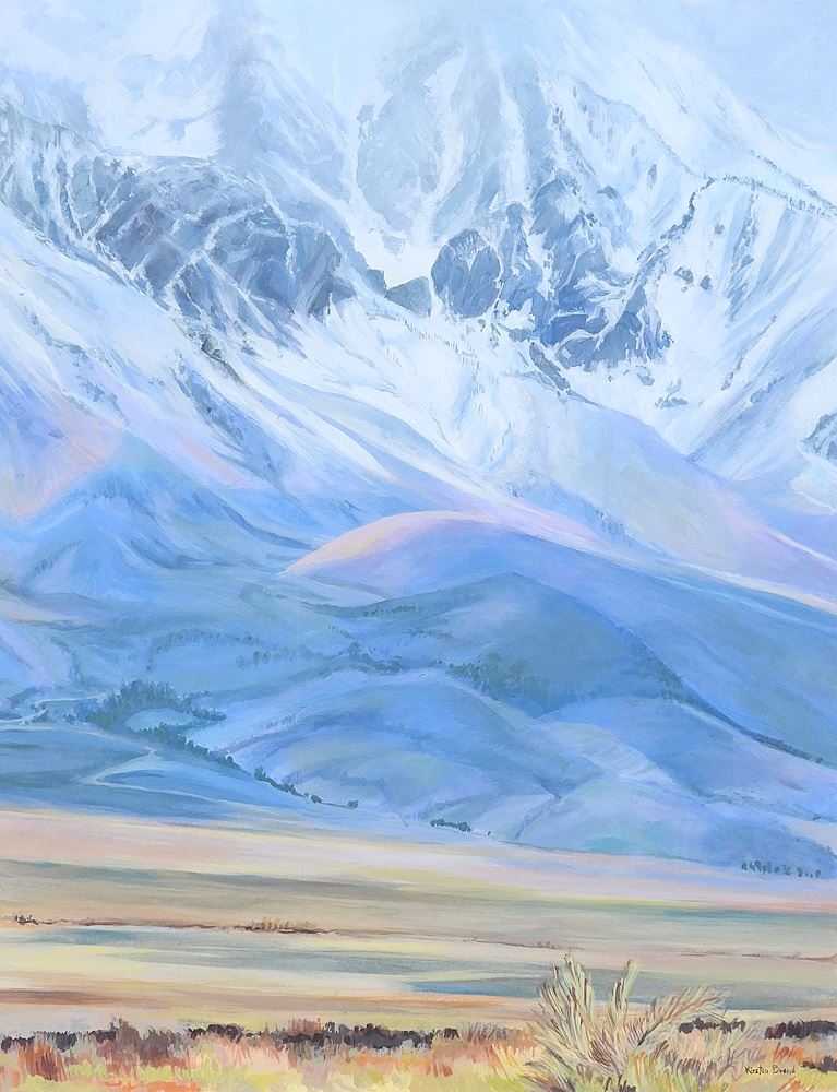 Acrylic on paper signed Kirsten Brand, Sheet 23 x 18", "Rocky Mountain Vista".