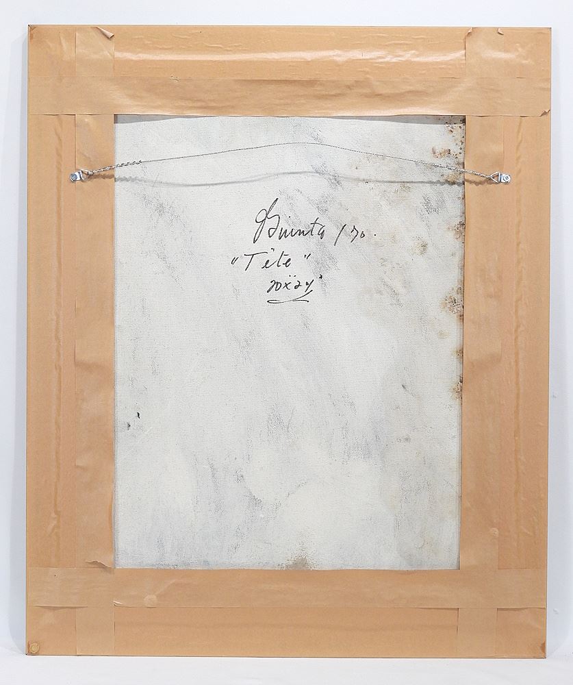 LOT 111 Oil on Masonite signed J. (Joseph) Guinta, 25 1/2 x 20", "Tete". Estimate: $300 - $500 Sold For: $275 Auction Date: Tuesday, March 10 2026 at 4:00 PM