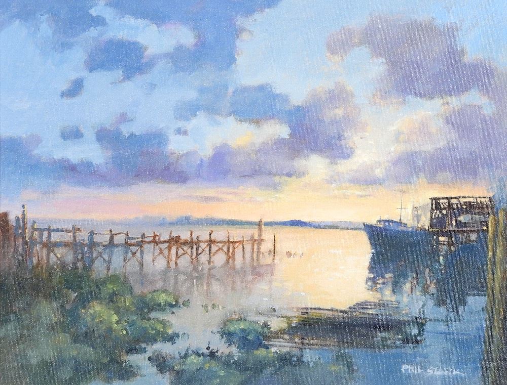 Oil on Board signed Phil Stark, 10 1/2 x 13 1/2", "Georgia Coastal View".