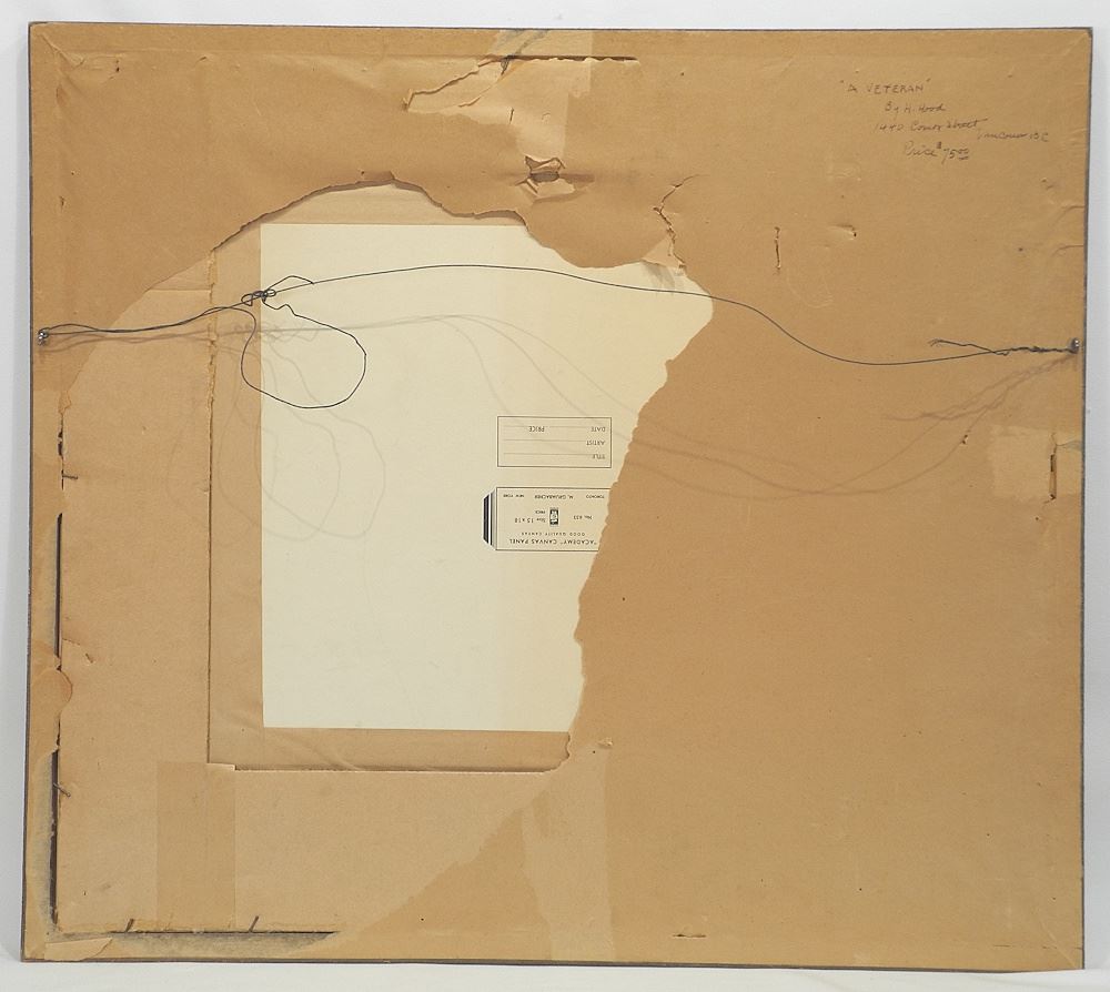 Oil on Canvas Board signed H.(Harry) Hood, 14 1/2 x 17 1/2", "A Veteran".