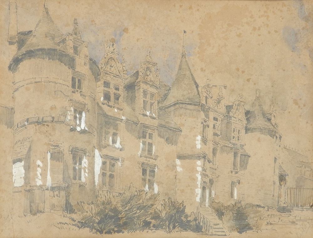 LOT 30 Signed Indistinctly, 9 x 11 3/4", "Old House with Turrets" (acquired Munich, foxing noted). Estimate: $50 - $70 Sold For: $45 Auction Date: Tuesday, March 10 2026 at 4:00 PM