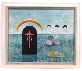 Mixed Media on Canvas signed (Jack) Wise '70, 20 x 24" "Opposition & The Hum of Progress".