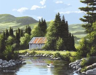 LOT 28 Two Acrylic on Board signed W. (Bill) Saunders, Larger 7 5/8 x 9 5/8" "Away From...". Estimate: $150 - $200 Auction Date: Tuesday, April 28 2026 at 4:00 PM