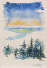 Watercolour signed L. (Lissa) Calvert '70, 21 1/2 x 14" "Sky & Trees".