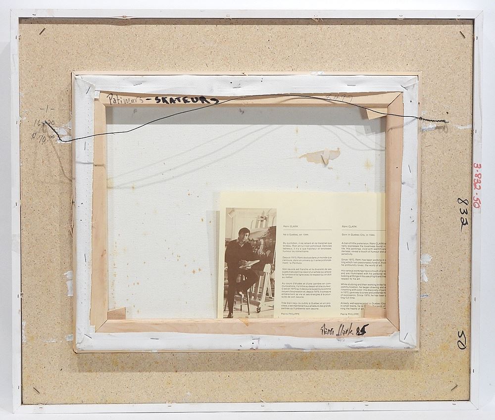 LOT 118 Oil on Canvas signed Remi Clark, 16 x 20" "Les Patineurs" 1984. Estimate: $200 - $400 Auction Date: Tuesday, April 28 2026 at 4:00 PM