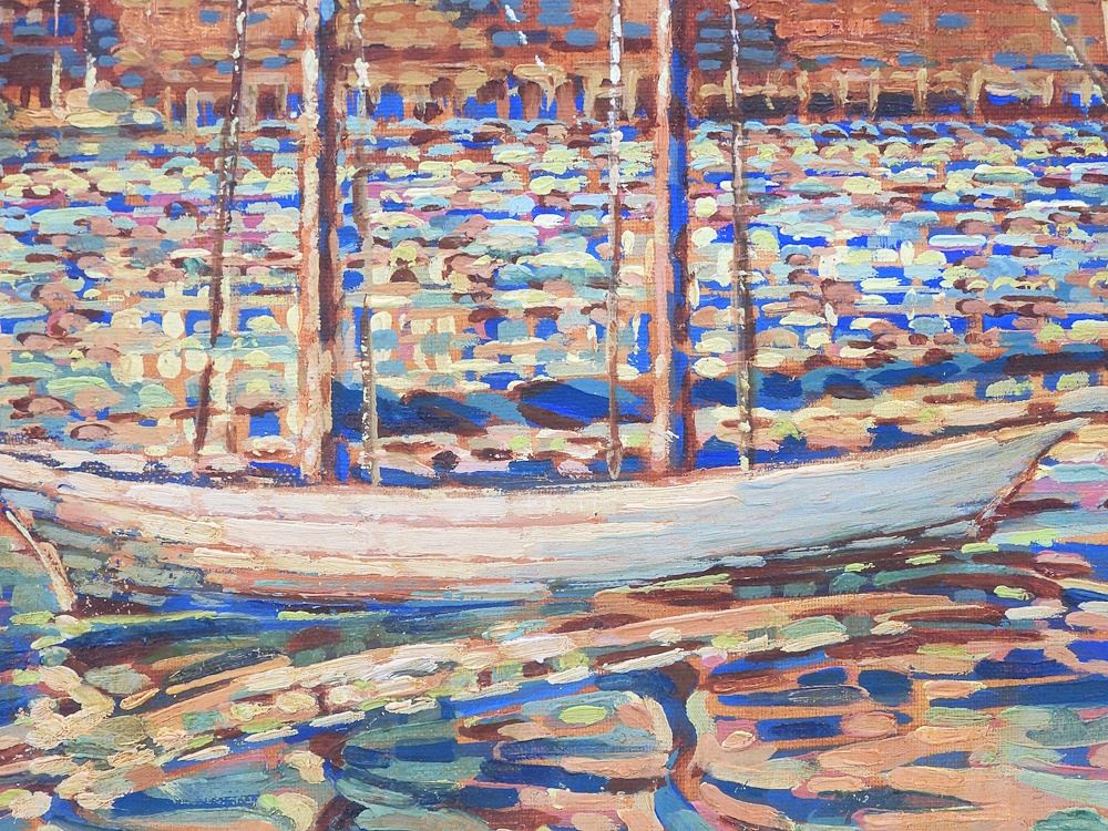 Oil on Board signed I.S.R. (Stella) Langdale, 9 5/8 x 11 1/2", "Harbour Scene".