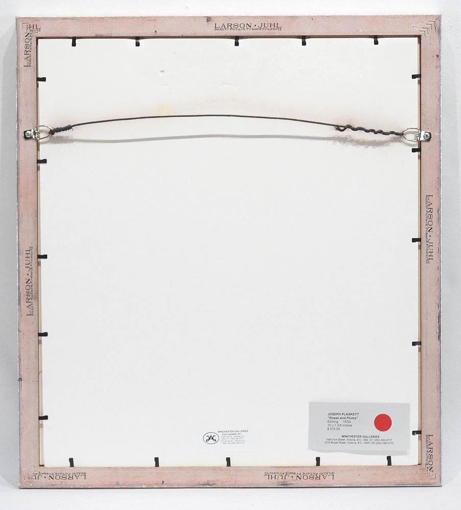 Etching signed (Joseph) Plaskett 1999, 10 x 7 3/4" "Roses & Plums".