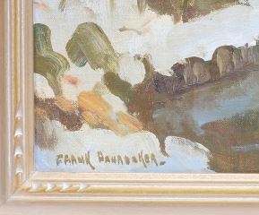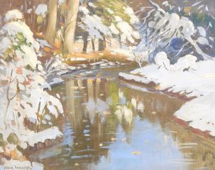 LOT 5 Oil on Masonite signed Frank Panabaker, 15 3/4 x 20" "River In Winter". Estimate: $1,000 - $1,500 Auction Date: Tuesday, April 28 2026 at 4:00 PM