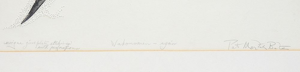 LOT 157 Unique Zinc Plate Etching signed Pat Martin Bates, 12 1/2 x 13 3/4" "Wakonomin-Again". Estimate: $150 - $300 Auction Date: Tuesday, April 28 2026 at 4:00 PM