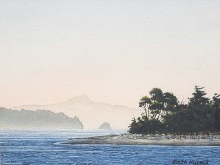 LOT 165 Watercolour signed Keith Hiscock, 4 1/2 x 5 7/8" "Coastal Scene" "Low Tide". Estimate: $100 - $200 Auction Date: Tuesday, April 28 2026 at 4:00 PM
