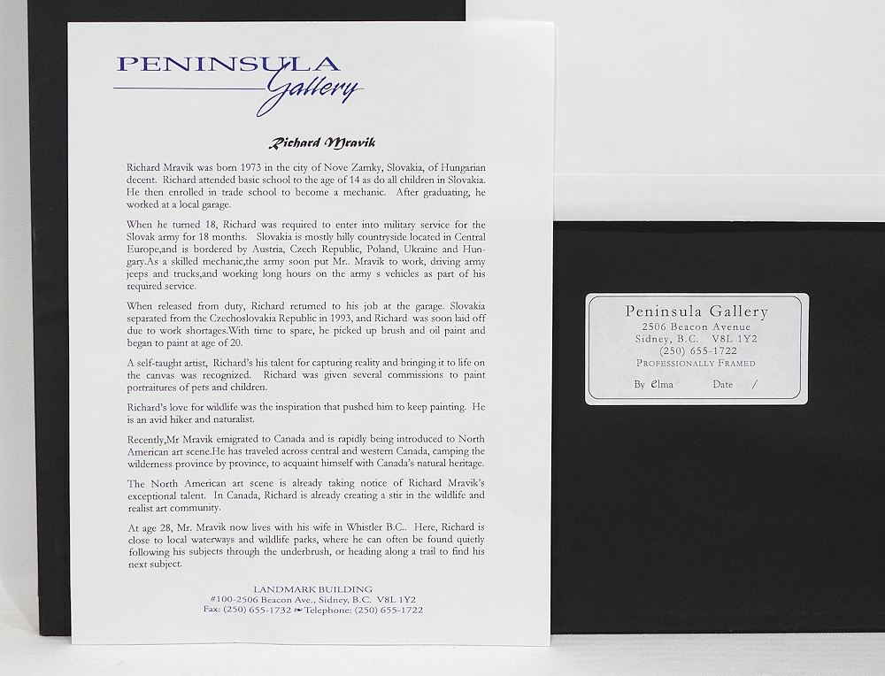 LOT 125 Acrylic on Panel signed Richard Mravik, 24 1/2 x 16 1/2" "Wolf". Estimate: $200 - $400 Auction Date: Tuesday, April 28 2026 at 4:00 PM